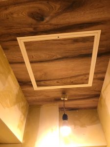 天井は木目デザインのクロス施工です。