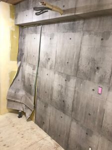 壁はコンクリートデザインのクロスを張りました。